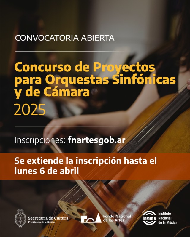 El Fondo Nacional de las Artes (FNA) y el Instituto Nacional de la Música (INAMU) anuncian el llamado del Concurso de Proyectos para Orquestas Sinfónicas y de Cámara.